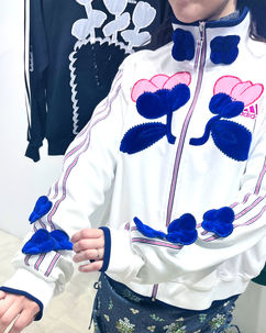 ブランド古着に刺繍をする時に私はロゴがある物を選ぶ、ブランドロゴを少し隠してみたり、モチーフを纏わせてみたり、その差し引きを楽しみに刺繍する。